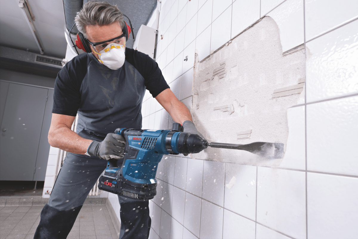 Akku-Bohrhammer BITURBO mit SDS plus GBH 18V-34 CF, Perfekt für anspruchsvolle Arbeiten in Beton – der GBH 18V-34 CF Professional von Bosch ist der leistungsstärkste SDS plus-Akku-Hammer, ideal für anspruchsvolle Anwendungen. Dank der BITURBO Brushless Technologie und ProCORE18V-Akku bietet dieses Kraftpaket eine herausragende Leistung von 5,8 J und ist damit der leistungsstärkste Akku-Hammer mit SDS plus in seiner Klasse. Dank Sanftanlauffunktion für präzises Meißeln und 3 verschiedener Betriebsarten (Auto, Favorite, Soft), über die für jede Aufgabe die richtige Einstellung sichergestellt wird, ist während der Arbeit eine perfekte Werkzeugkontrolle garantiert. Der 18V-34 CF ist gleichzeitig der intelligenteste SDS plus-Hammer mit Anzeige des Werkzeugstatus in Echtzeit über das User Interface und der Möglichkeit zur individuellen Anpassung über Bluetooth Connectivity zur Bosch Toolbox App. Dieses Werkzeug eignet sich bestens zum Hammerbohren und Meißeln in Beton, Ziegelstein und Stein. Das Gerät ist kompatibel mit allen Bosch Professional 18V-Akkus und -Ladegeräten (Professional 18V System). Für maximale Leistung: ProCORE18V ≥ 8,0 Ah. 2 x Akku ProCORE18V 5.5Ah (1 600 A02 149); Schnellladegerät GAL 1880 CV (1 600 A00 B8G); 1 x Bluetooth Low Energy Modul GCY 42 Professional (1 600 A01 3WF); Zusatzhandgriff (2 608 000 703); Tiefenanschlag (ET-Nr. 1 613 001 009); Wechselfutter SDS plus (2 608 000 704); Schnellwechselbohrfutter 1,5 - 13 mm (2 608 000 710); Maschinentuch (ET-Nr.: 1 619 200 413); Fetttube (ET-Nr. 1 615 430 010); Handwerkerkoffer (ET-Nr. 1 605 438 1G2)