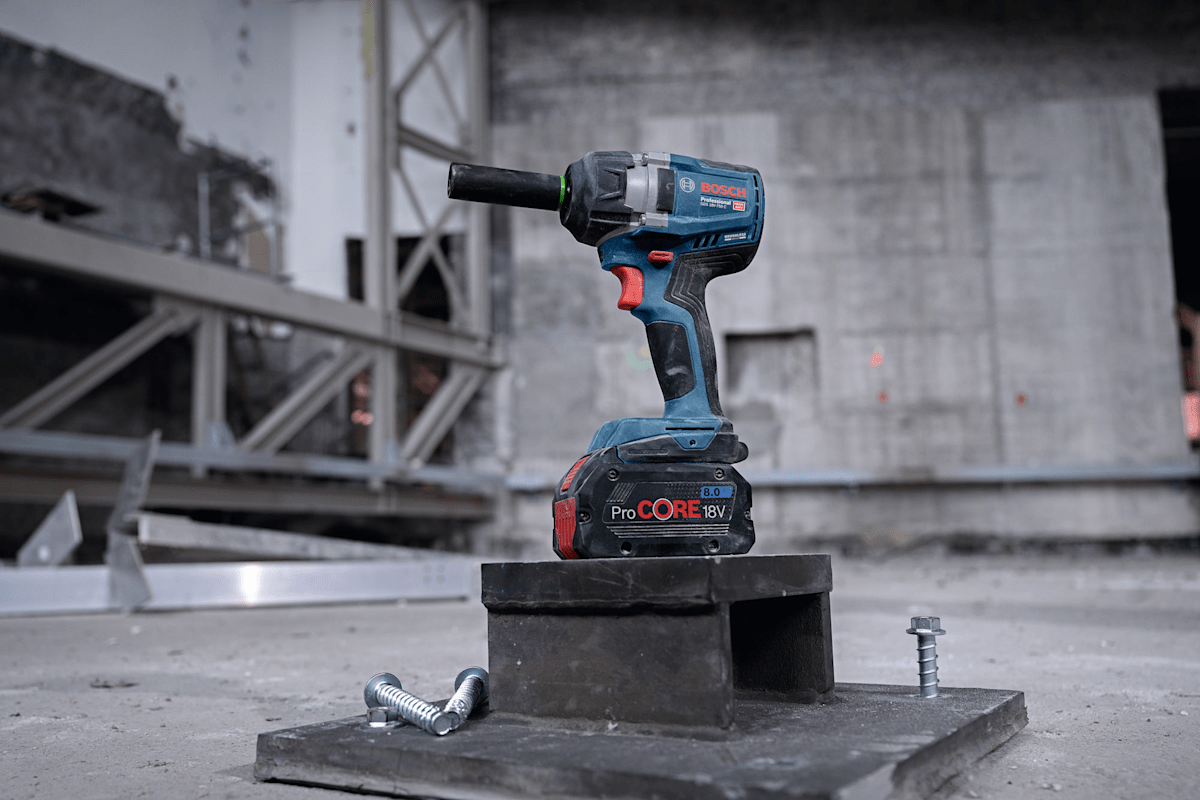 Akku-Drehschlagschrauber GDS 18V-750 C, Der kompakte Drehschlagschrauber GDS 18V-750 C Professional ist das perfekte Werkzeug für verschiedenste Anwendungen. Er liefert ein Anziehmoment von bis zu 750 Nm und ein Losbrechmoment von 1000 Nm und seine Kopflänge beträgt nur 156 mm. Perfekte Kontrolle und hohe Vielseitigkeit dank 3 Drehzahl-/Drehmoment-Einstellungen. Das User Interface bietet direkten Zugriff auf zwei Standardmodi: Metallschraube/-mutter (A) und Holzschraube (B). Beide gewährleisten kontrollierte Anwendungen und verhindern das Brechen von Schraubenköpfen im Rechtslauf und das Herunterfallen von Schrauben/Muttern im Linkslauf mit Auto Bolt Release (ABR). Über die Bosch PRO360 App kann jeder Modus für sich wiederholende Anwendungen individuell passend eingestellt werden. Die Secure Socket Release verhindert, dass der Werkzeugeinsatz auf der Schraube/Mutter stecken bleibt. Diese Funktion ist nur über die App aktivierbar. Der Drehschlagschrauber ist ideal für Metallwerkstätten/Schlossereien, industrielle Metallverarbeitung und Fahrzeuginstandhaltung bei der Verwendung von Metallschrauben/Muttern von M12 bis M22. Er eignet sich für verschiedenste Betonschrauben bis zu 16 mm bei Bauarbeiten sowie für Holzschrauben. Kompatibel mit dem Bosch Professional 18V System und mit der markenübergreifenden AMPShare Akku-Allianz. Ausgestattet mit zwei LED-Lichtern für erstklassige Beleuchtung des Arbeitsplatzes. Der Schlagschrauber verfügt auch über eine Statusanzeige und einen Gürtelclip für mehr Komfort. Karton