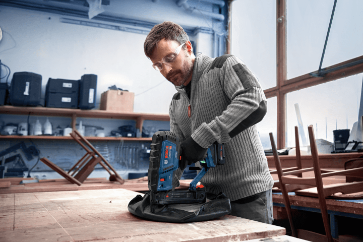 Ideal für die Montage von Decken- und Bodenpaneelen mit Nut- und Federverbindung (verdeckte Nagelung), von Möbelrückwänden, Polstern, Zäunen aus Draht oder dünnen Latten, Holzgittern und Schalldämmungen. Kompatibel mit dem Bosch Professional 18V System und mit der markenübergreifenden AMPShare Akku-Allianz.