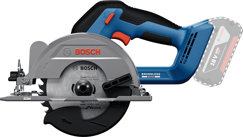 Akku-Kreissäge GKS 18V-51, Wenn du täglich Leimholz schneidest, brauchst du eine Kreissäge, die genügend Power hat, um große Mengen zu schaffen, und gleichzeitig klein und leicht genug ist, um dir die Arbeit zu erleichtern. Unsere Akku-Kreissäge GKS 18V-51 Professional bietet dank ihres kraftvollen bürstenlosen 18-V-Motors unbeschränkte Bewegungsfreiheit und müheloses Schneiden. Mit ihrem kompakten Design ist sie leicht zu tragen und ideal für vertikale und horizontale Schnitte. Die hohe Griffergonomie sorgt für komfortablen Halt. Mit unserer GKS 18V-51 Professional kannst du dank des verbesserten Absaugstutzens deinen Arbeitsplatz stets staubfrei halten. Die Kreissäge Bosch GKS 18V-51 Professional wurde für Kappschnitte in Bauholz, Längsschnitte in Leimholz und OSB-Platten sowie für Gehrungsschnitte in Bauholz entwickelt. Sie hat eine max. Schnittkapazität von 51 mm bei 0° und 35 mm bei 45°. 1 x Kreissägeblatt, Eco for Wood, 140 mm x 1,8/1,1 x 20 mm, 30 (2 608 844 565). 1 x Parallelanschlag (1 619 PS0 706)
