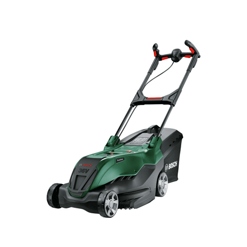 Akku-Rasenmäher AdvancedRotak 36V-44-750. Kraftvoller Akku-Mäher für ausgezeichnetes Mähen und Sammeln von Grasschnitt. Ausgezeichnete Schnittleistung und längere Lebensdauer dank bürstenlosem Motor. Bequemes Manövrieren und unproblematische Aufbewahrung dank Ergoflex-Handgriffen mit Ergoslide. Hochwertiger Textilgrasfangkorb mit Anzeige bei vollständiger Füllung. Syneon Technology für optimale Kraft und maximale Laufzeit. Kompatibel mit Bosch 36V POWER FOR ALL-Akku