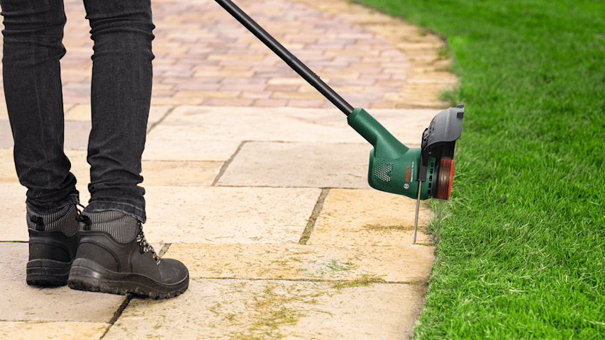 Akku-Rasentrimmer EasyGrassCut 18V-230. Kabellose Freiheit und komfortable Handhabung für mühelos zu bewerkstelligende gepflegte Rasenflächen. Ausbalanciert und leicht für eine einfache und bequeme Handhabung. Die EdgeSimple-Funktion ermöglicht das Kantenschneiden durch einfaches Drücken und Drehen des Handgriffs. Dank der unkomplizierten halbautomatischen Spule sind keine manuellen Anpassungen erforderlich. Stark genug, um die Kanten von bis zu sechs Tennisplätzen mit einer Akkuladung zu trimmen. Ideal zum Schneiden von Gras und Unkraut, Rasentrimmen und Kantenschneiden
