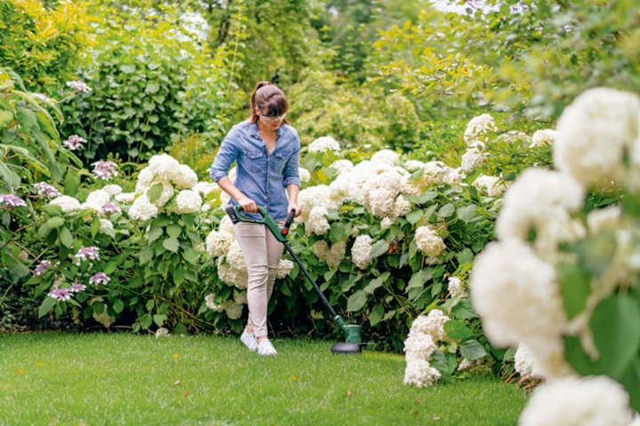 Akku-Rasentrimmer EasyGrassCut 18V-26. Für leichtes Trimmen – schnelle Ergebnisse mit kabelloser Freiheit. Ausgewogenes und leichtes Design für eine einfache und bequeme Handhabung. Die EdgeSimple-Funktion ermöglicht das Kantenschneiden durch einfaches Drücken und Drehen des Handgriffs. Dank der unkomplizierten halbautomatischen Spule sind keine manuellen Anpassungen erforderlich. Stark genug, um die Kanten von bis zu sechs Tennisplätzen mit einer Akkuladung zu trimmen. Ideal zum Schneiden von Gras und Unkraut, Rasentrimmen und Kantenschneiden. POWER FOR ALL: ein Akku für das komplette Home & Garden-Gerätesystem. Kartonschachtel