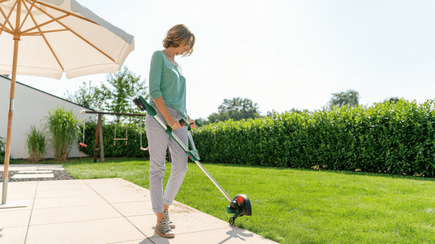 Akku-Rasentrimmer UniversalGrassCut 18V-260. Durchdachtes Design für natürliche und bequeme Gartenarbeit. Ergonomischer Griff in V-Form für eine bequeme Arbeitshaltung. IntelliFEED sorgt durch den aut