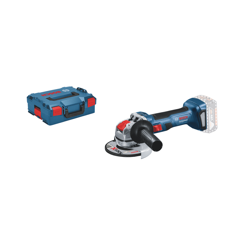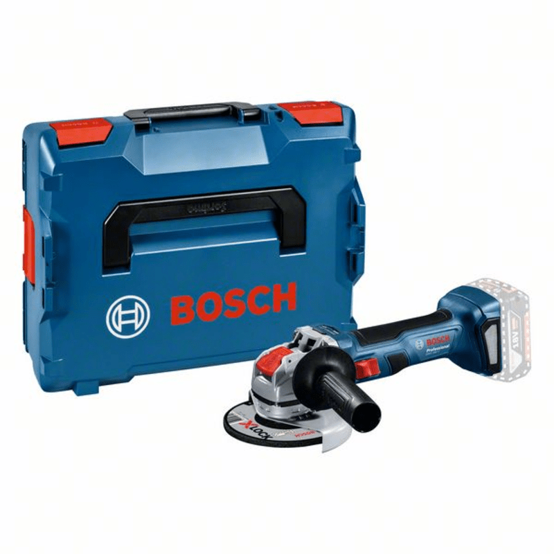 Akku-Winkelschleifer GWX 18V-7, Der Akku-Winkelschleifer GWX 18V-7 Professional ist Boschs Lösung für ein kompaktes und praktisches Trenngerät mit solider 18-Volt-Leistung und X-LOCK-System. Sein bürstenloser Motor liefert für zuverlässiges Arbeiten dieselbe Leistung wie ein 700-Watt-Winkelschleifer mit Kabel. Dank des werkzeuglosen X-LOCK-Systems kann Zubehör blitzschnell gewechselt werden, so dass sich Anwender ganz auf das konzentrieren können, was wirklich wichtig ist: die anstehende Arbeit. Das leichte Design des GWX 18V-7 und der schmale Griffumfang ermöglichen angenehmes und vielseitiges Trennen. Dieser Winkelschleifer ist ideal für alle Trennarbeiten bei Metall, Fliesen oder Mauerwerk. Das Gerät ist kompatibel mit X-LOCK Zubehör, allen Bosch Professional 18-Volt-Akkus und den Bosch Absaughauben GDE 115/125 FC-T Professional sowie GDE 125 EA-T Professional. Schutzhaube (1 605 510 365); Zusatzhandgriff (1 602 025 024); L-BOXX 136 (1 600 A01 2G0); 1/1 L-BOXX-Einlage für Gerät und Ladegerät (1 600 A00 2WH)