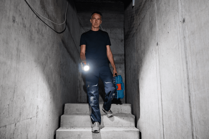 Die GLI 18V-800 Professional beleuchtet kleine bis mittelgroße und enge Arbeitsbereiche, ideal für Elektro- und Sanitärarbeiten sowie sonstige Aufgaben. Die Arbeitsleuchte ist kompatibel mit allen 18V-Akkus und -Ladegeräten der AMPShare-Allianz einschließlich aller Akkus und Ladegeräte des Bosch Professional 18V System.