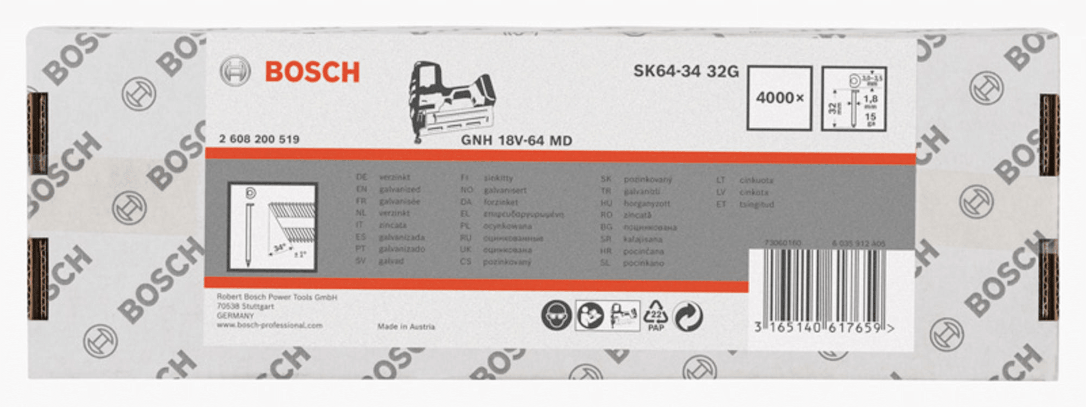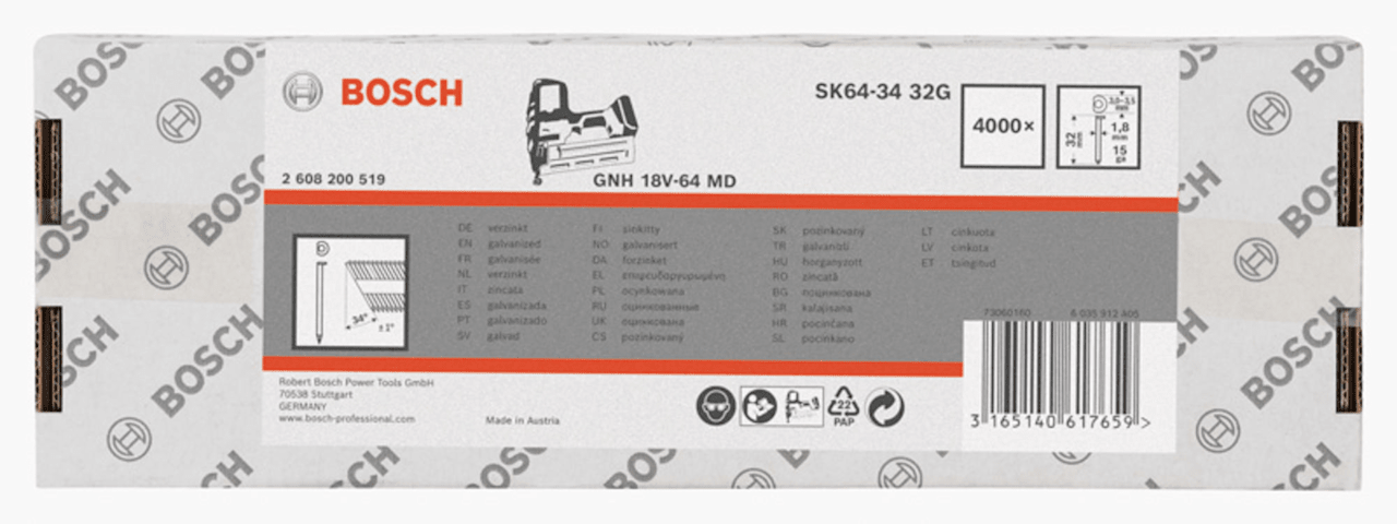 Bosch DA Senkkopf-Stift SK64-34 32G, 1,8mm, 32 mm, verzinkt, 4000er-Pack