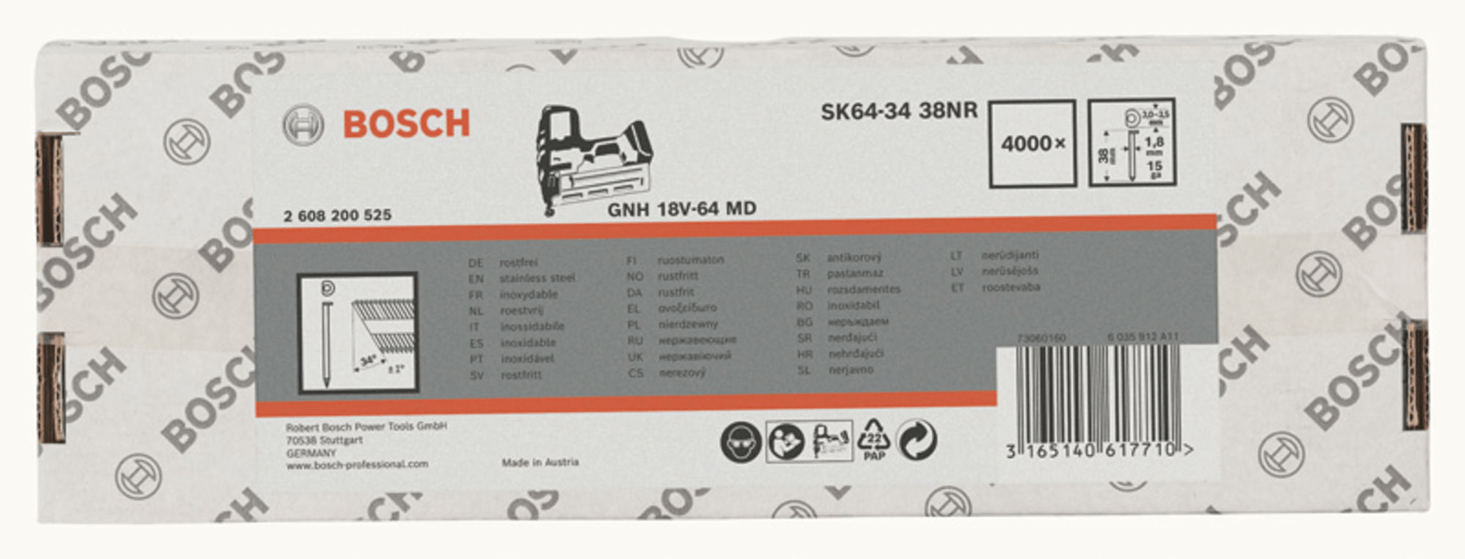 Bosch DA Senkkopf-Stift, SK64-34 38NR, 1,8mm, 38mm, rostfrei, 4000er-Pack