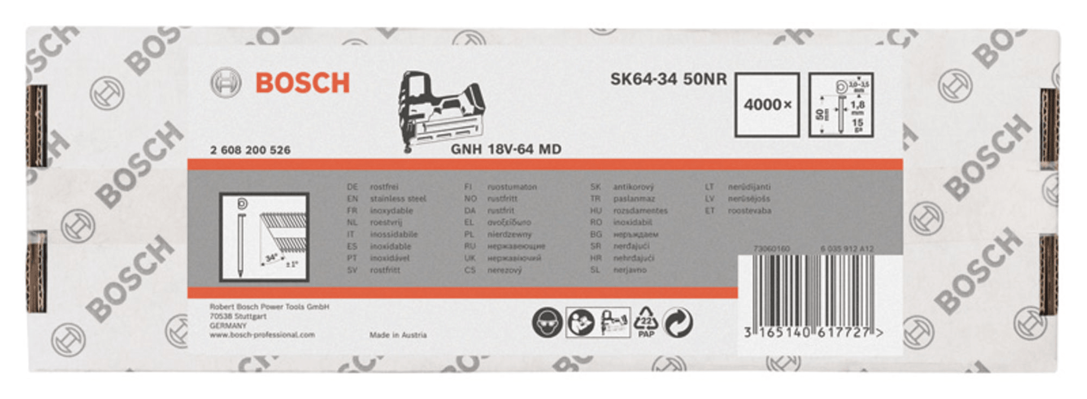 Bosch DA Senkkopf-Stift, SK64-34 50NR, 1,8mm, 50mm, rostfrei, 4000er-Pack