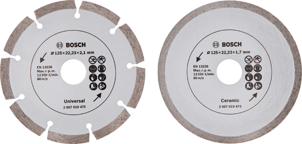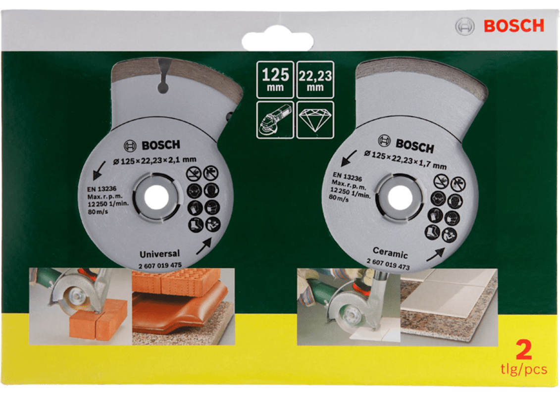 Bosch Diamanttrennscheibe für Fliesen und Baumaterial, Durchmesser: 125 mm, 2er-Pack