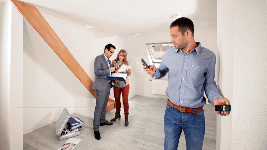 Digitaler Laser-Entfernungsmesser UniversalDistance 40C. Präzises Messen bis zu 40 m und Dokumentation mittels App. Präzises Messen von Entfernungen bis zu 40 m dank Lasertechnologie. Bluetooth-Konnek