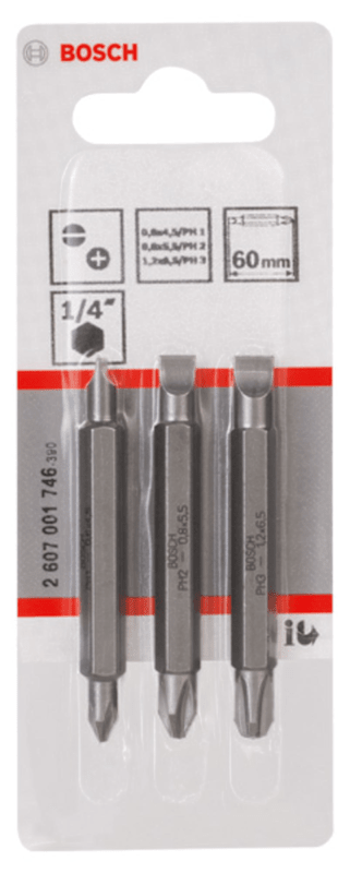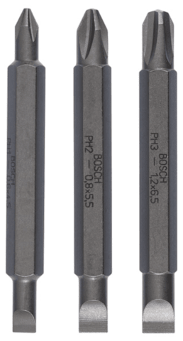 Bosch Doppelklingenbit-Set, 3-teilig, S0,6x4,5, PH1, S0,8x5,5, PH2, S1,2x6,5, PH3,60mm