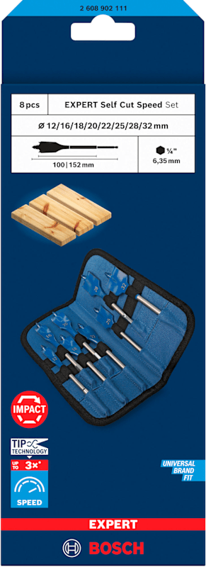 Hochgeschwindigkeitsbohren in Holz! Gewinde mit automatischem Vorschub für Bohren mit hoher Drehzahl und wenig Druck Flachfräsbohrer sind ein großartiges Zubehör für Elektriker und andere Installateure und Bauarbeiter. Was wäre, wenn sie noch schneller und effizienter sein könnten? Mit der Bosch Tip Technology ist dies möglich. Der Bosch EXPERT Self Cut Speed Flachfräsbohrer eignet sich für alle Arten von Weichholz und bietet Effizienz und Komfort für Experten, die Löcher für Kabel, Rohre und andere Installationen bohren müssen. Schnelles Bohren ist mit Bosch Tip Technology noch einfacher