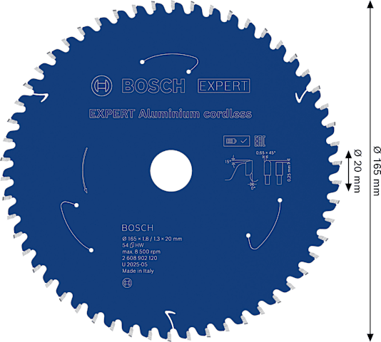 Meesenburg Artikelbezeichnung: BOSCH EXPERT ALU KREISSÄGEBLATT 165X20MM Z54 (2608902120)