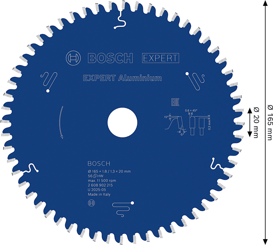 Meesenburg Artikelbezeichnung: BOSCH EXPERT ALU KREISSÄGEBLATT 165X20MM Z56 (2608902215)