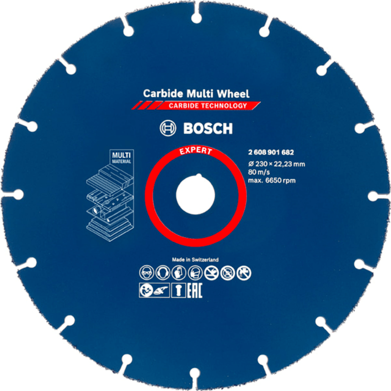 Herausragende Lebensdauer in unterschiedlichen Materialien! Der gleichbleibende Durchmesser hält Schnittgeschwindigkeit und Schnittkapazität konstant hoch Profis schätzen Winkelschleifer für ihre Fähigkeit, zähe Materialien wie Beton, Stein und Metall zu trennen. Mit der EXPERT Carbide Multi Wheel Trennscheibe kann dieses wunderbare Werkzeug noch vielseitiger eingesetzt werden. Sie schneidet effizient alle Arten von weicheren Materialien wie Holz, Kunststoff und moderne Verbundwerkstoffe. Mit der EXPERT Carbide Multi Wheel Trennescheibe wird dein Winkelschleifer noch vielseitiger. Viele Handwerker benötigen möglicherweise nur dieses einzige Elektrowerkzeug. Überragende Lebensdauer dank Bosch Carbide Technology