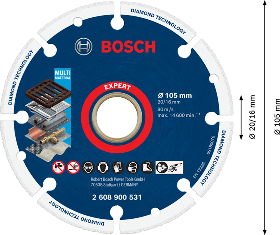 BOSCH EXPERT DIAMOND METAL WHEEL TRENNSCHEIBE 105X20/16MM (2608900531)