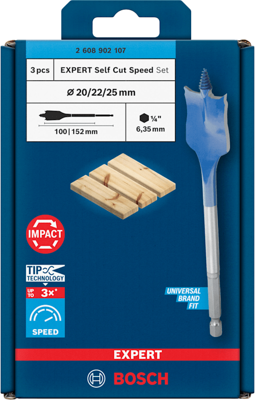 Bosch EXPERT Self Cut Speed Flachfräsbohrer-Set, 20/22/25 mm, 3-tlg.