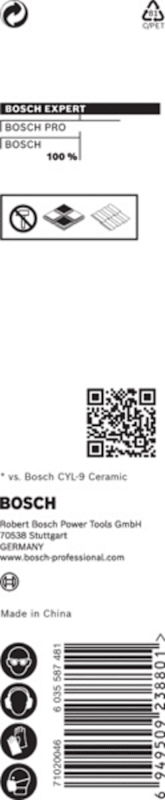 Herausragende Lebensdauer in harten Fliesen! Präzises Anbohren von Löchern dank einer speziell konzipierten Zentrierspitze Da Wandfliesen mittlerweile immer größer und härter werden, ist auch das Bohren von Löchern mit einem Fliesenbohrer immer schwieriger. Aus diesem Grund hat Bosch den EXPERT Hard Ceramic Bohrer entwickelt, mit dem du Hartkeramik trocken bohren kannst. Er ist zudem weitaus langlebiger als unser Benchmark-Bohrer für Fliesen. Der Bosch EXPERT HEX-9 Hard Ceramic Bohrer eignet sich zum Bohren von Keramik. Er kann ohne Schmiermittel oder Kühlung Löcher in harte Fliesen bohren. Außergewöhnlich ausdauernder Bohrer mit Bosch Carbide Technology