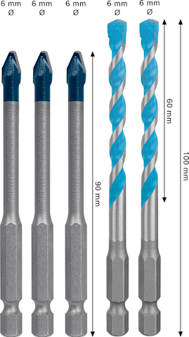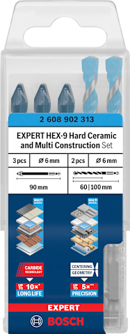 Bosch EXPERT HEX-9 Hard Ceramic und HEX-9 Multi Construction Bohrer-Set, 6 mm, 5-tlg.