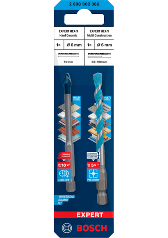 BOSCH EXPERT HEX-9 HARD CERAMIC + HEX-9 MULTI CONSTR. BOHRER 6MM (2608902366)