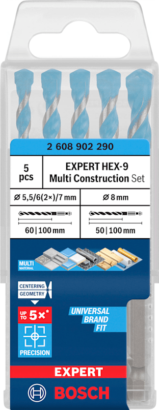 Bosch EXPERT HEX-9 Multi Construction Bohrer-Set, D= 5,5 / 6 / 6 / 7 / 8 mm, 5-tlg.