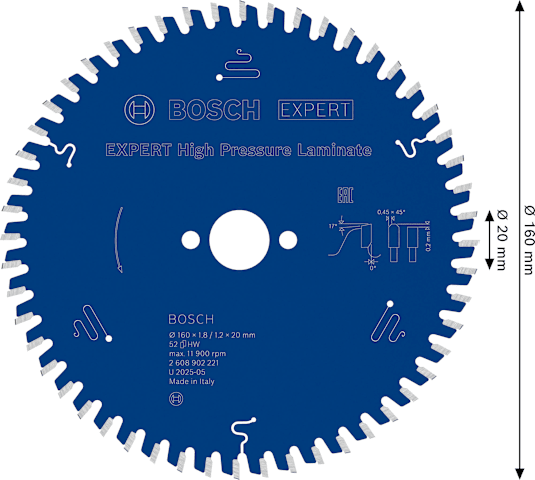 Bosch EXPERT High Pressure Laminate Kreissägeblatt, 160x20 mm, Z52