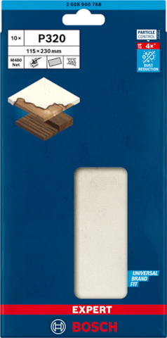 Bosch EXPERT M480 Schleifnetz für Schwingschleifer, 115 x 230 mm, K 320, 10er-Pack