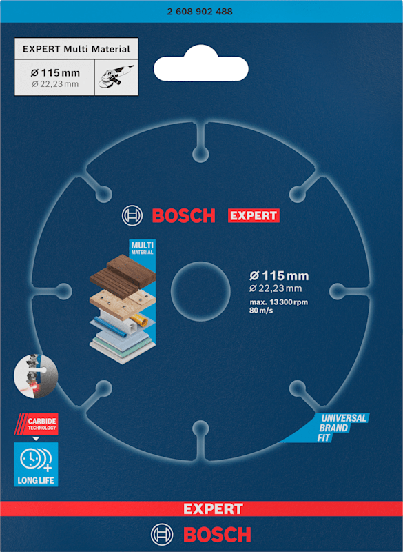 Herausragende Lebensdauer in verschiedenen Werkstoffen! Der gleichbleibende Durchmesser hält Schnittgeschwindigkeit und Schnittkapazität konstant hoch Profis schätzen Winkelschleifer für ihre Fähigkeit, zähe Materialien wie Beton, Stein und Metall zu trennen. Mit der EXPERT Multi Material-Trennscheibe kann dieses wunderbare Werkzeug noch vielseitiger eingesetzt werden. Sie schneidet effizient alle Arten von weicheren Materialien wie Holz, Kunststoff und moderne Verbundwerkstoffe. Mit der EXPERT Multi Material wird dein Winkelschleifer noch vielseitiger. Viele Handwerker benötigen möglicherweise nur dieses einzige Elektrowerkzeug. Überragende Lebensdauer dank Bosch Carbide Technology