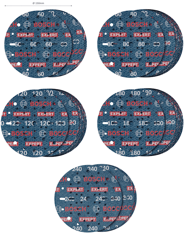 Bosch EXPERT O780 Foil Schleiffolien-Set, 150 mm, G60/G80/G120/G180/G240, 55-tlg.