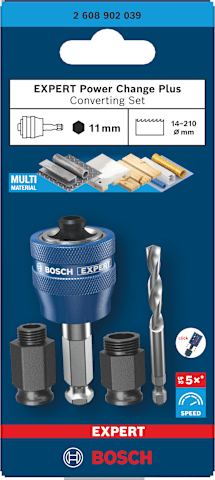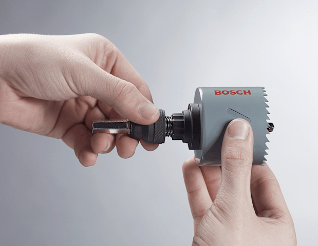 Mit hoher Geschwindigkeit wechselnde Lochsägen und Bohrer! Kann mit einem kompletten Sortiment an Lochsägen genutzt werden Das Anbringen des Zentrierbohrers an den Adapter war schon immer eine schwierige Aufgabe. Dies kostet Profis Zeit und Geld. Mit dem EXPERT Power Change Plus kannst du dank dem cleveren Ein-Klick-Adapter von Bosch innerhalb von Sekunden die Zentrierbohrer wechseln. Dieses schlüssellose System muss nicht mit Schrauben oder Bolzen befestigt werden. Sie ziehen einfach eine Lochsäge heraus und schieben eine andere hinein. Trotz dieser offensichtlichen Einfachheit bietet die EXPERT Power Change Plus eine feste Verbindung: Mit einem verstärkten Schaft und einem passgenauen Führungsbohrer hat sie sogar weniger Spiel als herkömmliche Systeme. Mit den Adaptern in diesem Set können Sie Standard-Lochsägen mit Durchmessern von 1430 mm (1/2-20UNF-Gewinde) und 32152 mm (5/8-18UNF-Gewinde) mit Bosch Power Change Plus verwenden. Maximale Effizienz mit dem Quick Change-System von Bosch