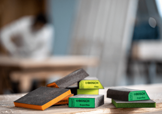 Längere Lebensdauer beim Schleifen von Holz und Farbe! Der Schleifschwamm sorgt für gleichmäßigen Druck auf die Oberfläche Manchmal gibt es keine Alternative zum Handschleifen. Das Problem war, dass sich herkömmliche Schleifblätter beim Schleifen von Rundungen und Kanten schnell abgenutzt haben. Oft waren sie auch zugesetzt oder brachen. Die einzige Lösung war, viele Schleifblätter zu kaufen, was zu einem hohen Verbrauch und viel Abfall führte. Heute gibt es Schleif-Schaumstoffe mit Bosch Surface Structure. Dank einer abgerundeten Kante und einer scharfkantigen Seite lassen sich mit diesem Schleifschwamm-Set auch schwer zugängliche Bereiche problemlos erreichen und schleifen. Der Bosch EXPERT Schleifschwamm Combi Block ist eine Revolution beim Handschleifen. Wenn du ihn einmal verwendet hast, möchtest du nie wieder etwas anderes. Starke, flexible Verbindung der Schleifkörner mit dem Vlies dank Bosch Surface Structure