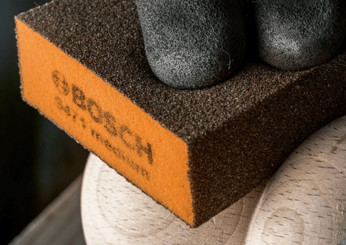 Längere Lebensdauer beim Schleifen von Holz und Farbe! Der Schleifschwamm sorgt für gleichmäßigen Druck auf die Oberfläche Manchmal gibt es keine Alternative zum Handschleifen. Das Problem war, dass sich herkömmliche Schleifblätter beim Schleifen von Rundungen und Kanten schnell abgenutzt haben. Oft waren sie auch zugesetzt oder brachen. Die einzige Lösung war, viele Schleifblätter zu kaufen, was zu einem hohen Verbrauch und viel Abfall führte. Heute gibt es Schleif-Schaumstoffe mit Bosch Surface Structure. Quadratische Schleifschwämme sind ideal zum Schleifen von ebenen Flächen und 90-Grad-Kanten. Der Bosch EXPERT Schleif-Schaumstoff Standard Block ist eine Revolution beim Handschleifen. Wenn du ihn einmal verwendet hast, möchtest du nie wieder etwas anderes. Starke, flexible Verbindung der Schleifkörner mit dem Vlies dank Bosch Surface Structure