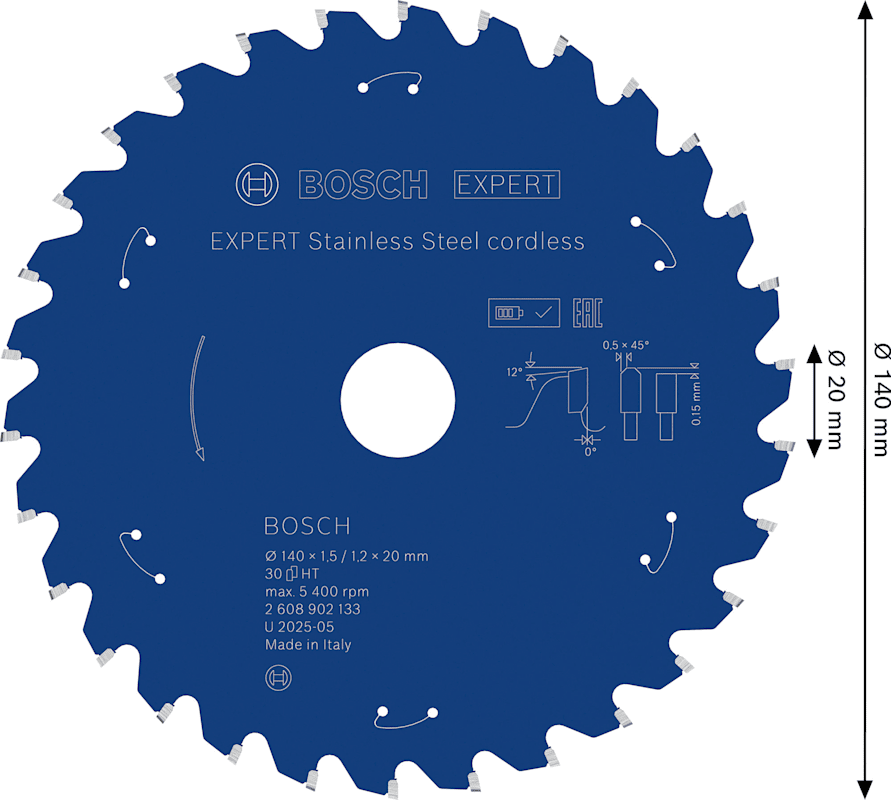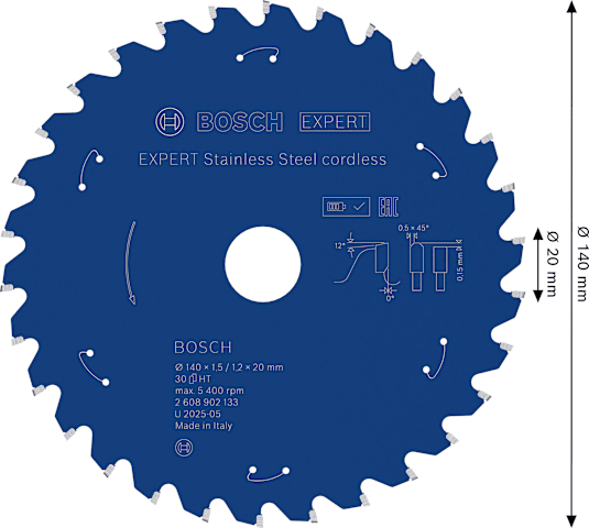 Meesenburg Artikelbezeichnung: BOSCH EXPERT STAINLESS STEEL KREISSÄGEBLATT 140X20MM Z30 (2608902133)