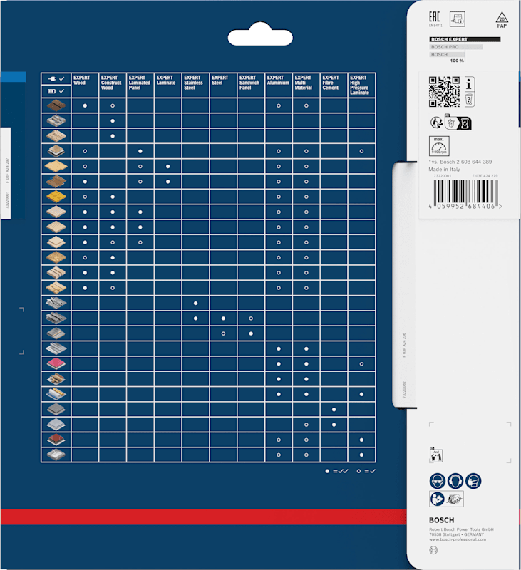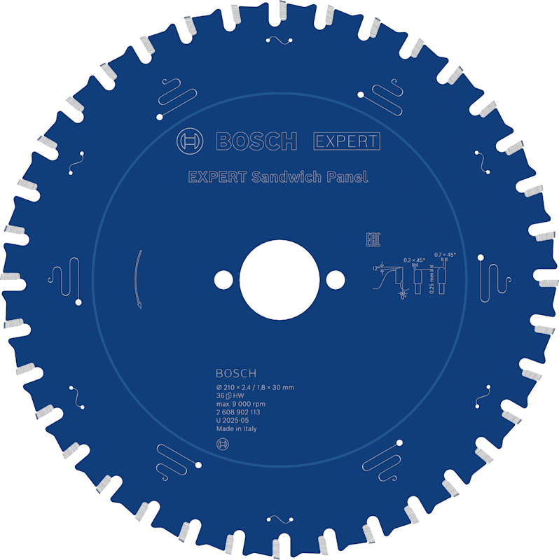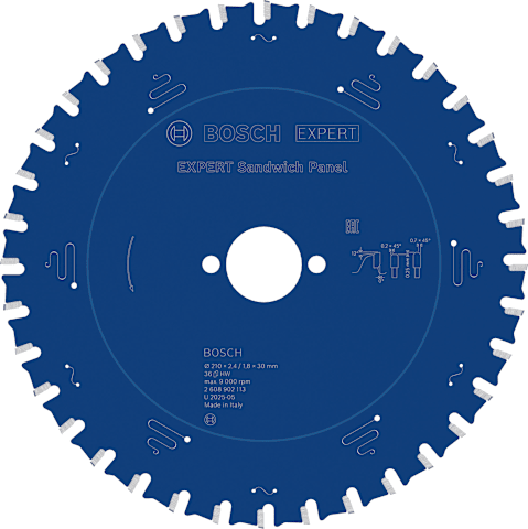 Lange Lebensdauer in Sandwich-Metallplatten! Zusätzliche Beschichtung für mehr Leistung und längere Haltbarkeit Wer auf einer industriellen Baustelle arbeitet, schneidet täglich Sandwich-Metallplatten. Dieser Werkstoff ist die Herausforderung für jedes Sägeblatt und macht Standard-Sägeblätter schnell stumpf. Aber nicht das EXPERT Sandwich Panel Kreissägeblatt. Mit unserem Kreissägeblatt können Sie sehr viele Sandwichplatten sauber schneiden. Die feinen Zähne des EXPERT Sandwich Panel sind scharf geschliffen und wurden mit der Bosch Carbide Technology hergestellt. Dadurch ist es sehr langlebig und ermöglicht saubere, präzise Schnitte. Zum Schutz vor Wärmestau und Korrosion haben wir es mit einer zusätzlichen Beschichtung versehen. Außergewöhnlich robust dank Bosch Carbide Technology