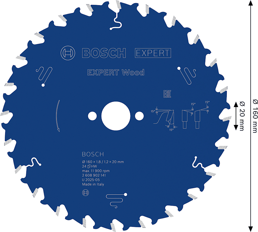 Bosch EXPERT Wood Kreissägeblatt, 160x1,8x20 mm, Z24