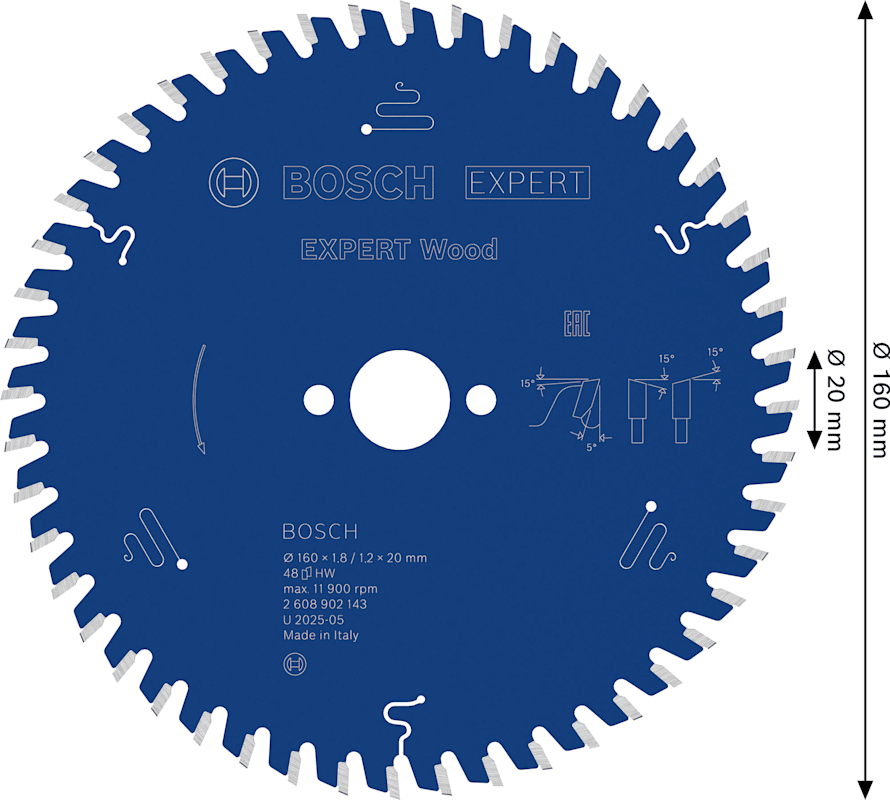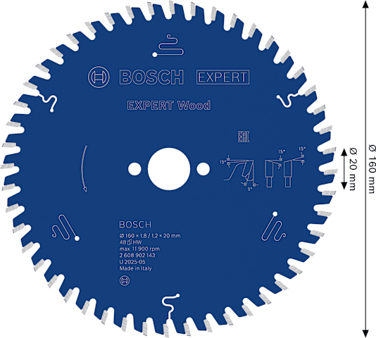 Bosch EXPERT Wood Kreissägeblatt, 160x1,8x20 mm, Z48