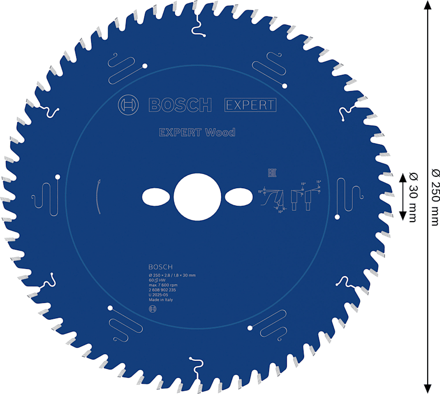 Bosch EXPERT Wood Kreissägeblatt, 250x2,8x30 mm, Z60