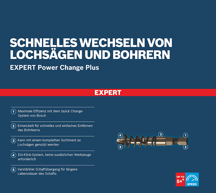 Zum Bohren von Vorbohrungen und zum Führen von Lochsägen! Hochgeschwindigkeitsstahl mit zusätzlichem Kobaltmaterial für langanhaltende Leistung Der Zentrierbohrer für EXPERT PC Plus Lochsägen hilft di