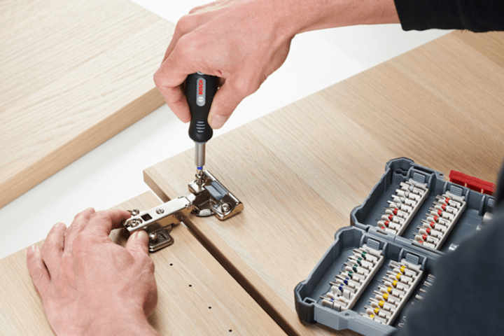 Das Extra Hard Set, 44+1‑tlg. beinhaltet alle Standardbohrer und Steckschlüssel, die du für Schraubarbeiten benötigst. Die Schrauberbits bestehen aus wärmebehandeltem, S2-modifiziertem Stahl für Härte und Verschleißfestigkeit. Sie sind farbcodiert, damit du das richtige Bit einfacher findest. Das Set ist in einem robusten Pick and Click-Koffer untergebracht, damit du deinen eigenen Werkzeugkasten zusammenstellen und deine Bits gut organisiert und geschützt aufbewahren kannst. Es enthält einen Schraubendrehergriff mit Dauermagnet zum sicheren Halten der Bits.