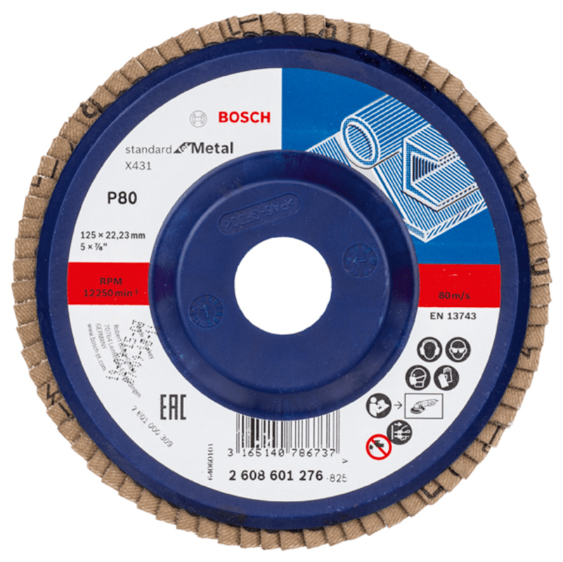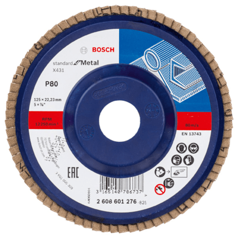 BOSCH FÄCHERSCHLEIFSCHEIBE X431 STANDARD FOR METAL GERADE 125MM K80 KUNSTSTOFF..