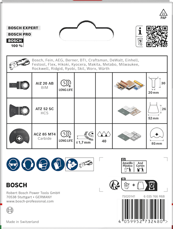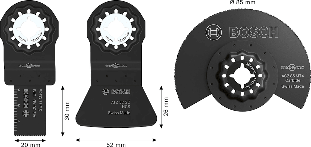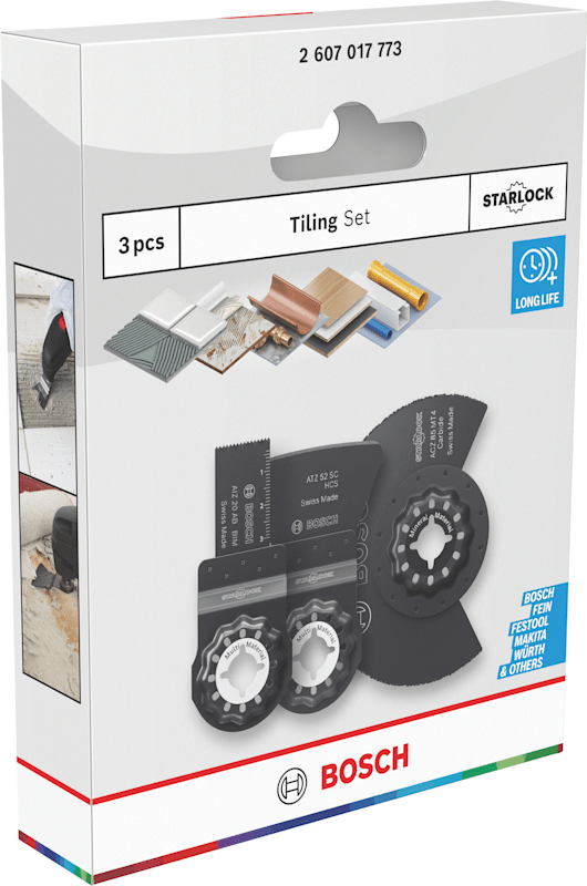 Mit den Sägeblättern im Fliesen Set können professionelle Fliesenleger und Renovierer den Mörtel zwischen den Fliesen entfernen und den dahinter liegenden Fliesenkleber abkratzen.