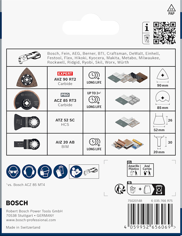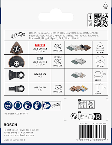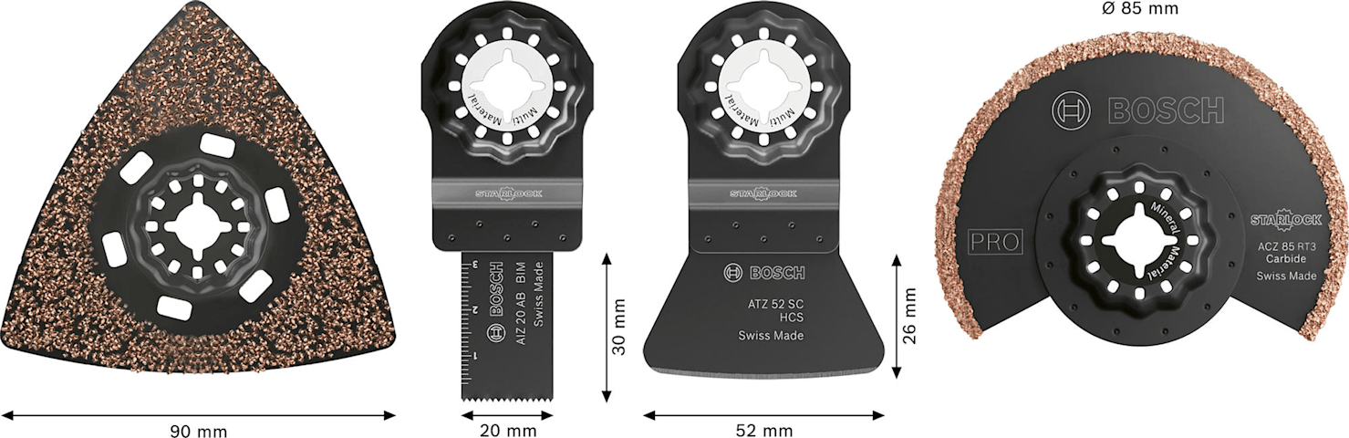 Mit den Sägeblättern im Fliesen Set können professionelle Fliesenleger und Renovierer den Mörtel zwischen den Fliesen entfernen und den dahinter liegenden Fliesenkleber abkratzen.