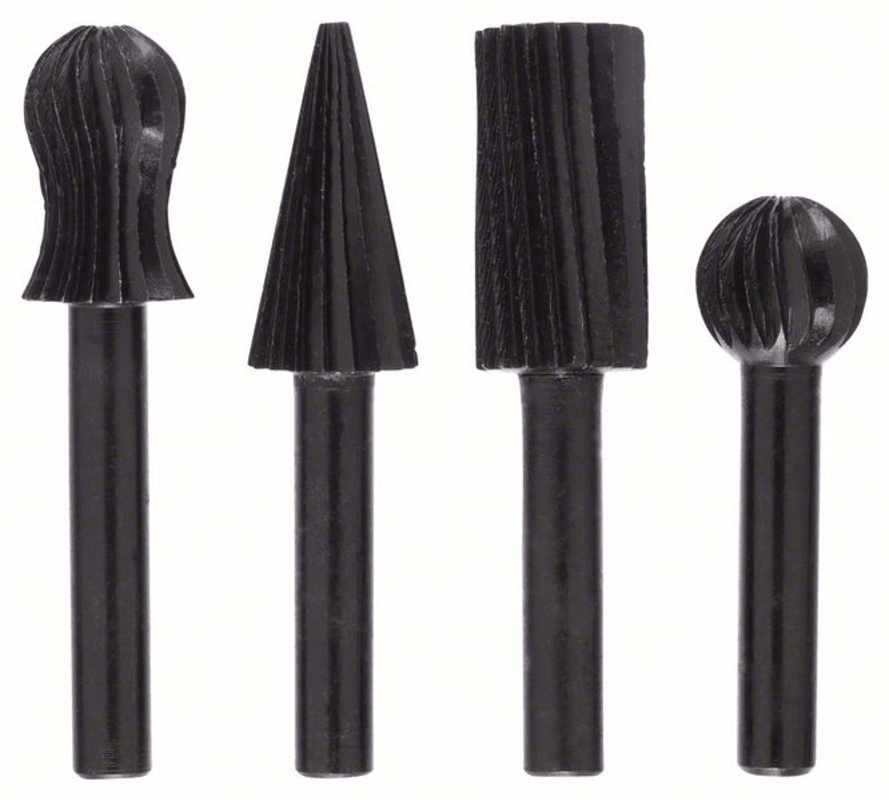 Das 4-teilige Freihandfräser-Set enthält Zubehör, das das Entgraten von und Arbeiten auf verschiedenen Formen von vielen Materialien. Die enthaltenen Freihandfräser haben die Formen konkav, kegelförmig, zylindrisch und rund. Dadurch ist das Set ideal für verschiedene Anwendungen in Holz und Nichteisenmetallen sowie Eisen.