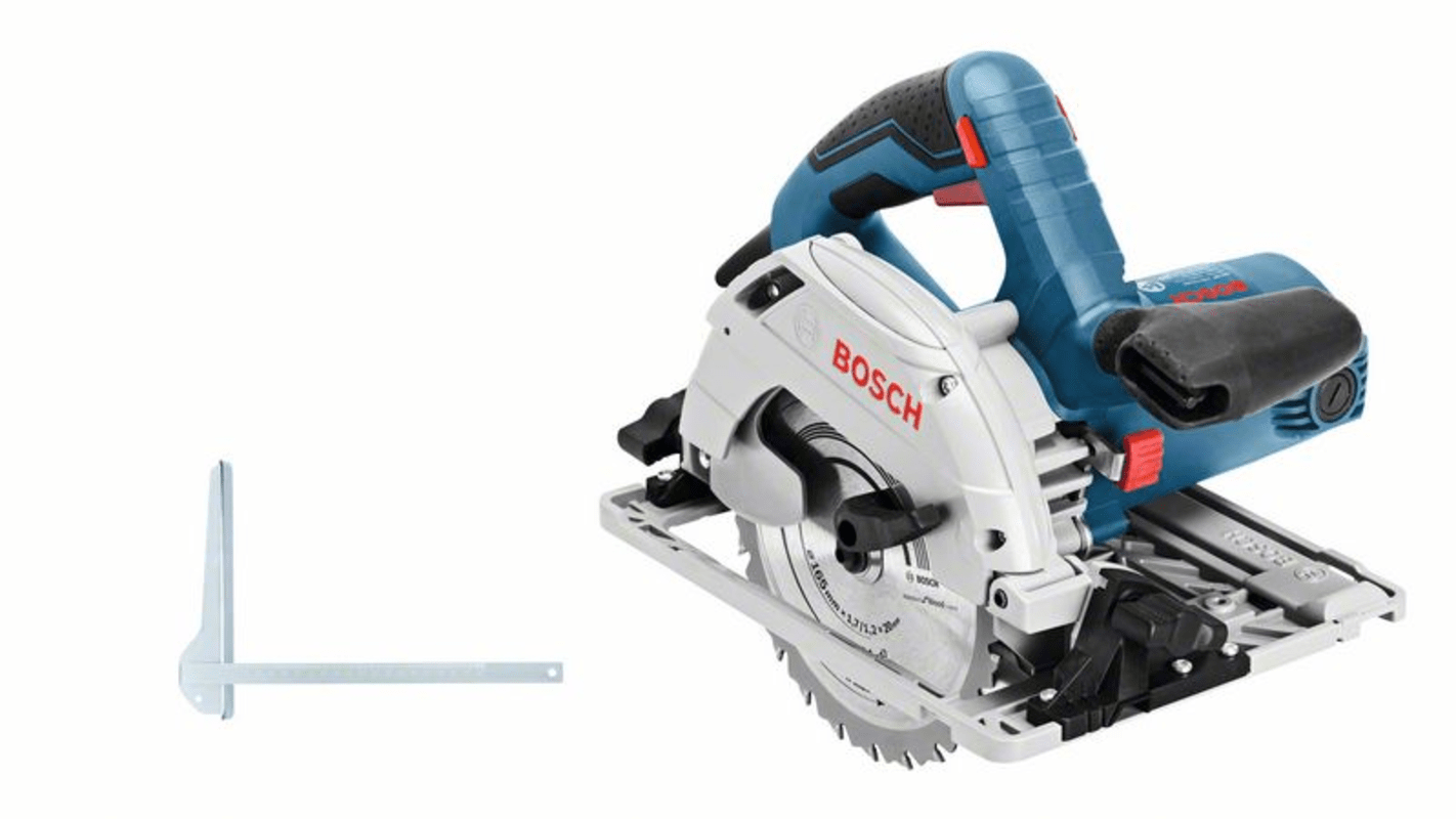 Handkreissäge GKS 55+ GCE. Die kompakte GKS 55+ GCE Professional erreicht eine hohe Schnittkapazität, sogar dort, wo dies normalerweise nur mit wesentlich größeren Sägeblättern möglich ist. Bei zahlreichen Materialien erreicht die Kreissäge dank ihres zweistufigen Getriebes eine Schnitttiefe von 63 mm. Sie läuft außerdem reibungslos auf dem Bosch Führungsschienensystem und lässt sich für genaues Sägen optimal führen. Die elektronische Drehzahlregelung ermöglicht eine variable Drehzahl für die Arbeit mit verschiedensten Materialien. Genaue Ergebnisse beim Sägen in verschiedenen Holzmaterialien, z. B. in Holzwerkstoffen wie OSB, Sperrholz oder MDF. Die Säge ist mit dem Bosch Führungsschienensystem kompatibel, ebenso mit den Schienensystemen von Mafell, Festool und Makita. Die GKS 55+ GCE Professional ist mit Gebläse, Absaugstutzen, Fußplatte aus Aluminiumdruckguss, konstanter Drehzahl, schneller Motorbremse, Sanftanlauf und Spindelarretierung ausgestattet. Im Lieferumfang enthalten: Innensechskant, Karton, 1x Kreissägeblatt, Standard for Wood speed, 165 x 1,7 x 20 mm, 12 (2 608 642 600), Parallelanschlag (1 608 190 007), Vakuumadapter
