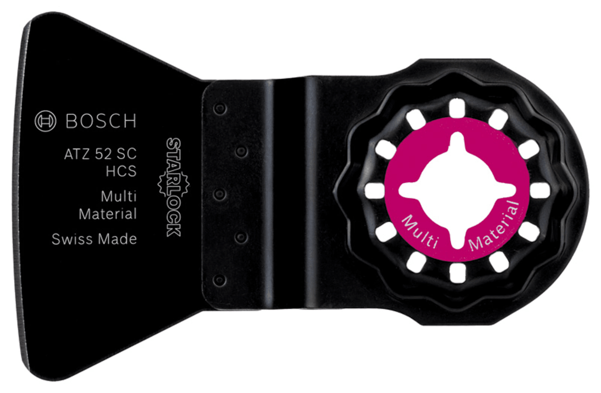 Der Schaber Starlock ATZ 52 SC entfernt zuverlässig harte Rückstände. Sein scharfes Blatt ist ideal zum Entfernen von festem, spröden Material geeignet. Der robust und biegesteif ausgeführte Körper aus HCS-Stahl (Stahl mit hohem Kohlenstoffgehalt) macht den Schaber beim Entfernen von verhärteten Resten widerstandsfähig und biegefest. Er entfernt zuverlässig Mörtel oder Fliesenkleber sowie Betonreste und harte Teppichkleberreste. Das Starlock-Aufnahmesystem ermöglicht einen schnellen Blattwechsel ohne Blattberührung in drei Sekunden. Das Starlock-Aufnahmesystem ermöglicht durch seine dreidimensionale enge Passung maximale Kraftübertragung zwischen Maschine und Zubehör.