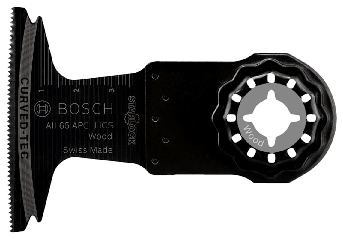Das Tauchsägeblatt Starlock AII 65 APC ermöglicht breite und präzise Schnitte in Holz. Seine abgerundete Blattspitze (Curved-Tec) ermöglicht präzise und glatte Tauchschnitte. Die flache Blattgestaltu