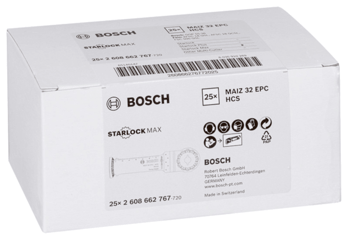 Das Tauchsägeblatt Starlock MAIZ 32 EPC ermöglicht besonders tiefe Schnitte in Holz. Seine Länge von 80 mm erhöht die Reichweite für ausgedehnte Schnitte. Die direkte Kraftübertragung und das robuste Starlock-Aufnahmesystem reduzieren Lateralschwingung und ermöglichen längere präzise Schnitte. Mit diesen robusten Merkmalen ist dieses Produkt ideal geeignet für tiefe Tauchschnitte in Holz und Holzbalken sowie zum Anfertigungen von Aussparungen für Zapfen und Verbindungen. Das Blatt durchschneidet auch massives Weichholz. Eine abgerundete Blattspitze (Curved-Tec) ermöglicht präzise und glatte Tauchschnitte. Das System Starlock Max ermöglicht selbst bei härtestem Einsatz maximale Schnitttiefe, Geschwindigkeit und Vielseitigkeit. Zusätzlich ermöglicht das Starlock-Aufnahmesystem schnellen Blattwechsel in drei Sekunden ohne Blattberührung. Das spezielle Starlock-Aufnahmesystem ermöglicht durch seine dreidimensionale enge Passung maximale Kraftübertragung zwischen Maschine und Zubehör.