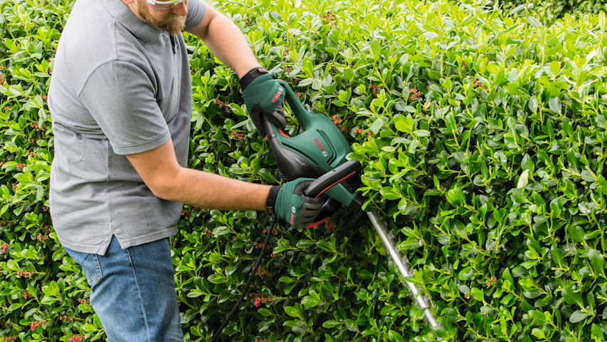 Heckenschere UniversalHedgeCut 60. Geballte Leistungskraft für mittelgroße Hecken bei 80 % niedrigerem Geräuschpegel. ProSilence ermöglicht eine kraftvolle Leistung mit 80 % Geräuschdämpfung auf 91 dB