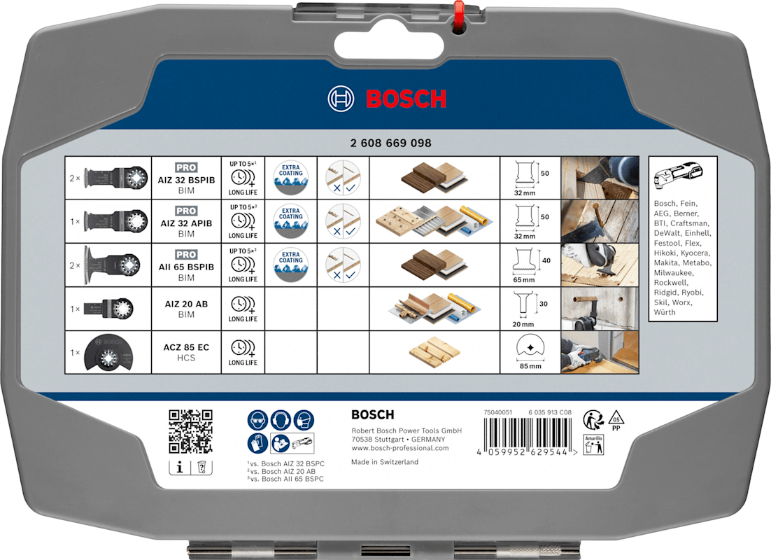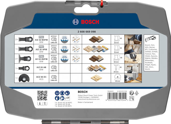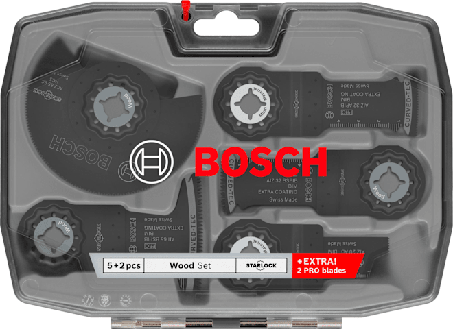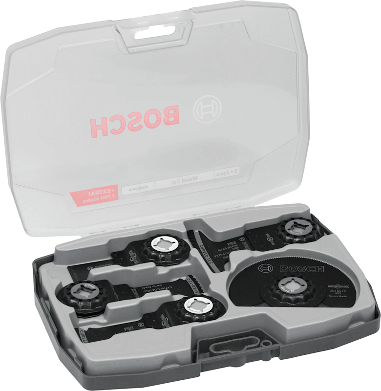 Wir haben das Holz-Set für Tischler entwickelt, die Tauchschnitte in Holz ausführen müssen. Die oszillierenden Multitool-Sägeblätter in diesem Set sind so konzipiert, dass sie alle Arten von Holz schneiden, einschließlich Hartholz, Holz mit Nägeln und Holzverbundwerkstoffe.